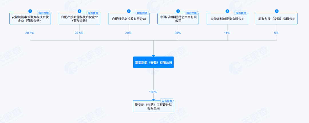 天眼查显示,聚变新能75%的股份由安徽及合肥市国资持有,新能源企业蔚来持股5%。